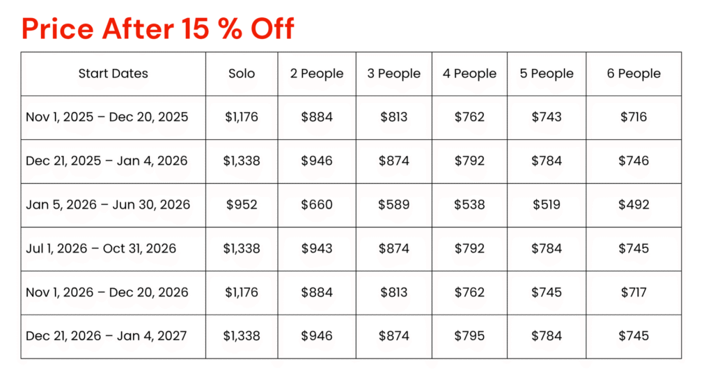 • Accommodation as mentioned (unless labeled as an optional upgrade)